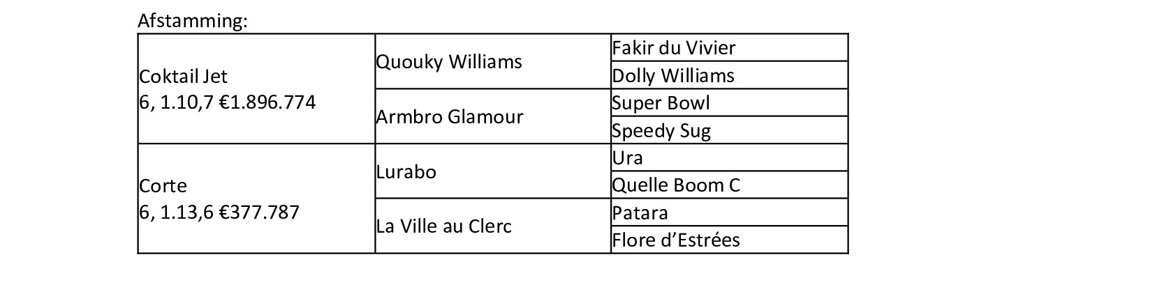 - Carlita, 5, 1.15,0 €94.480, moeder van Karlito, 3, 1.11,3 €249.540, étalon