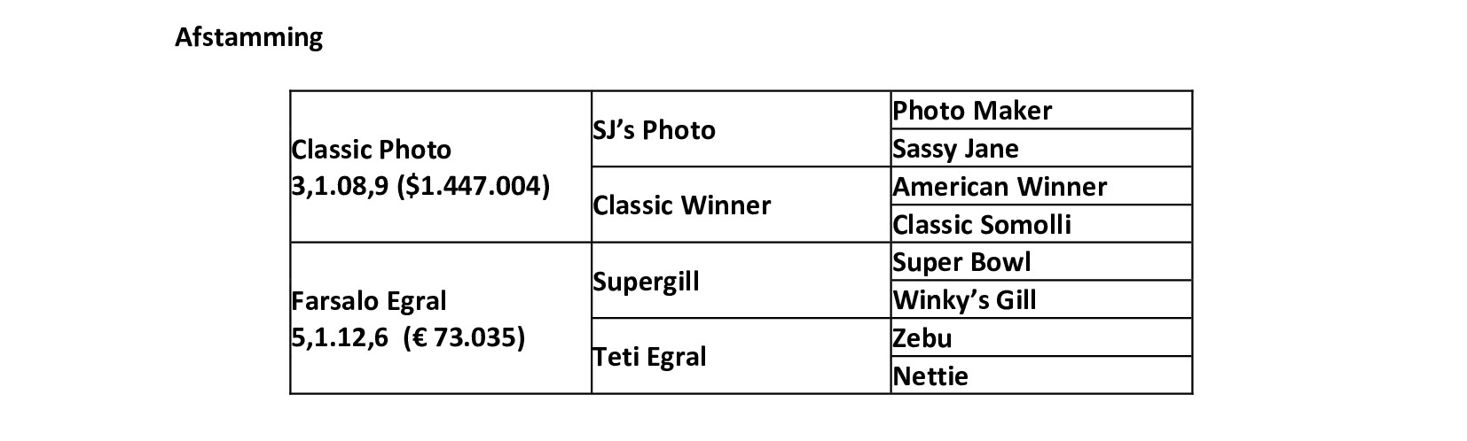 2e moeder Teti Egral, 1.14,4 (€ 82.215) bracht 9 producten- 3 winnaars: